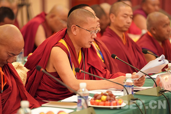 圖為山南市佛教協(xié)會(huì)會(huì)長(zhǎng)達(dá)娃次仁發(fā)言。攝影:王淑