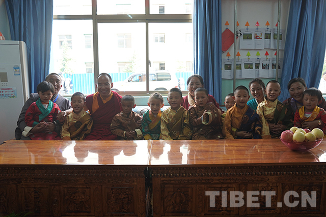 圖為十一世班禪與部分孩子合影留念。攝影:王淑
