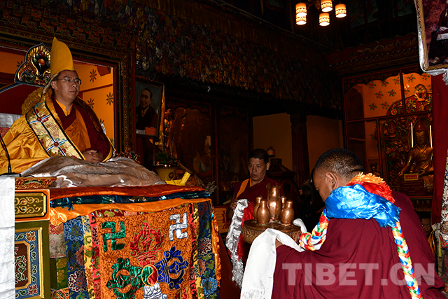 圖為十一世班禪朝拜珍珠唐卡殿。攝影:達(dá)娃