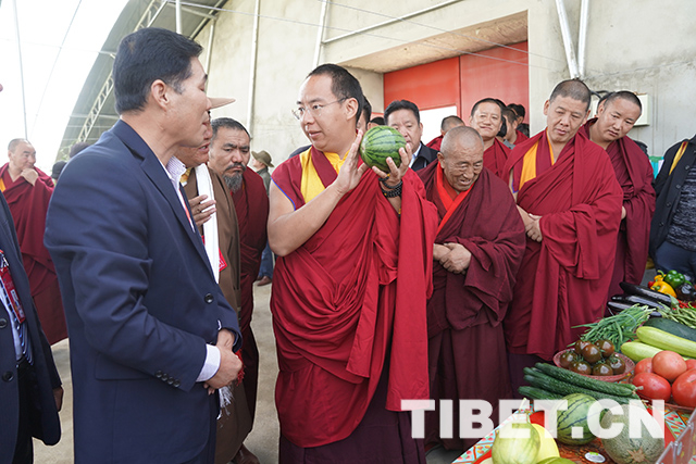 圖為十一世班禪在白朗縣考察蔬菜種植基地。攝影:王淑