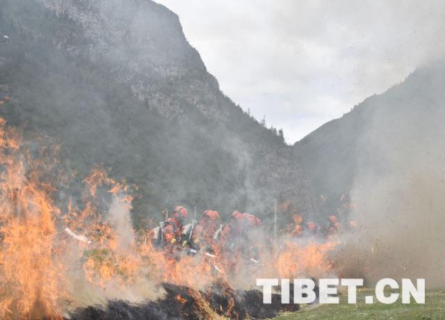 圖為濃煙四起,官兵們沉著“應(yīng)戰(zhàn)”。