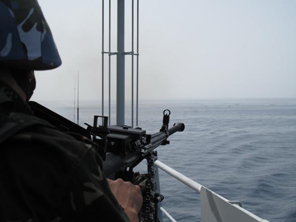 9發(fā)信號(hào)彈發(fā)出,海盜快艇依然向商船逼近。“西基諾斯”號(hào)船舷較低,一旦海盜登船,后果不堪設(shè)想。