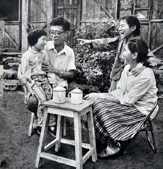 趙潛德進入墨脫縣公辦小學后,同妻子羅布央宗和兩個女兒過著非常幸福的生活,拍攝于1980 年。(趙潛德供圖)