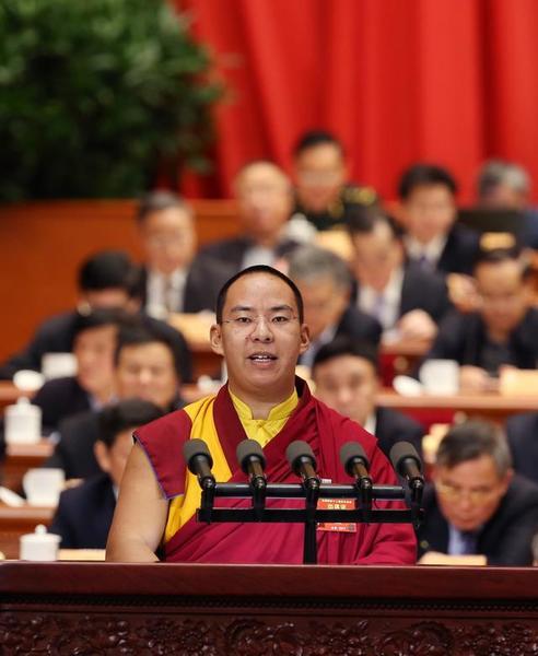 3月11日,全國政協(xié)十二屆五次會(huì)議在北京人民大會(huì)堂舉行第四次全體會(huì)議,作為全國政協(xié)常委,十一世班禪在會(huì)上作題為《做好宗教工作為國家發(fā)展和人類福祉做出新時(shí)代的貢獻(xiàn)》的發(fā)言。圖片來源:新華網(wǎng)