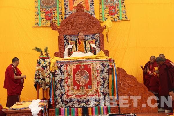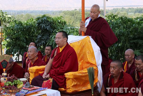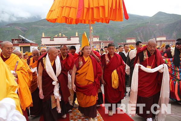 7月18日至24日,十一世班禪在青??疾煺{(diào)研,并舉行佛事活動(dòng)。圖為他在結(jié)古寺法會(huì)上,法相莊嚴(yán),威儀具足。攝影:袁星宇