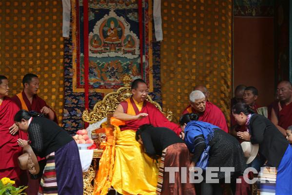 7月30日,十一世班禪在班禪拉薩行宮“雪林多吉頗彰”為廣大信教群眾摸頂賜福。攝影:王淑