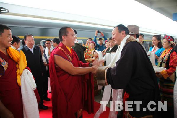 8月1日,十一世班禪圓滿結(jié)束在拉薩的各項(xiàng)佛事和社會(huì)活動(dòng)后,乘火車回抵日喀則扎什倫布寺,受到日喀則市社會(huì)各界及信教群眾的隆重歡迎。攝影:王淑