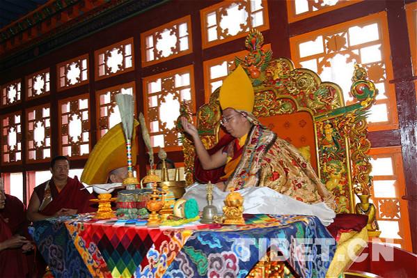 圖為十一世班禪在青海省藏語系佛學(xué)院講經(jīng)。攝影:袁星宇
