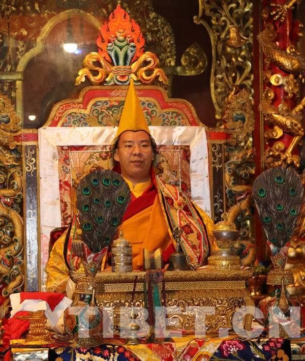△班禪在結古寺法會上,法相莊嚴,威儀具足。