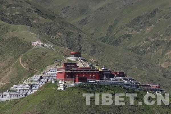 7月18日上午,班禪一行來到位于玉樹市北面木塔梅瑪山的結古寺。結古寺是當?shù)卦洳柯涞乃_迦派寺院,歷來以建筑宏偉、寺僧眾多、文物豐富、名僧高徒多聞名遐邇。2010年4月14日玉樹發(fā)生7.1級地震后,結古寺遭受重創(chuàng)。如今,經過災后重建,結古寺甚至可以說比往日更輝煌。