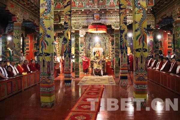 △班禪在結古寺大殿講經,該殿按照傳統(tǒng)建筑技藝修復如初。