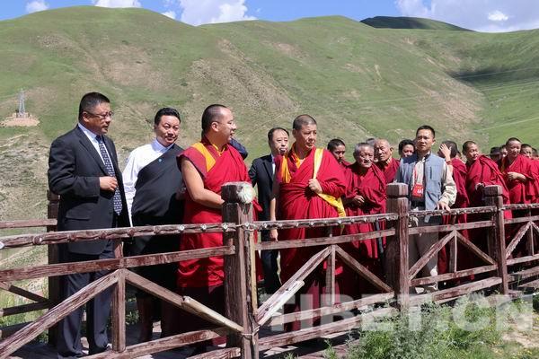青海調研行期間,班禪一行前往玉樹市(藏文稱為結古)結古寺舉辦誦經法會并為僧人摸頂祈福、布施,下午又登上玉樹市當代山觀景臺考察災后重建成果,接著又前往新建的玉樹州博物館,參觀可可西里生態(tài)地理展和玉樹宗教民俗文化展。