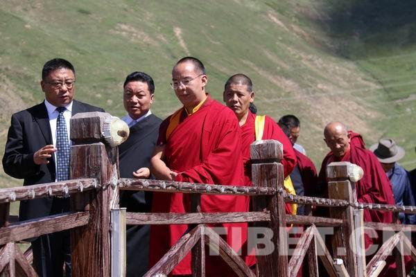 在觀看玉樹市全景的同時,班禪不斷地與玉樹當?shù)馗刹總兘涣髡鸷笾亟ê陀駱浣洕鐣l(fā)展相關情況。班禪在觀景臺上踱步前行、邊聊邊思考,大家都為這位年輕宗教領袖胸懷天下黎民蒼生而欣慰。