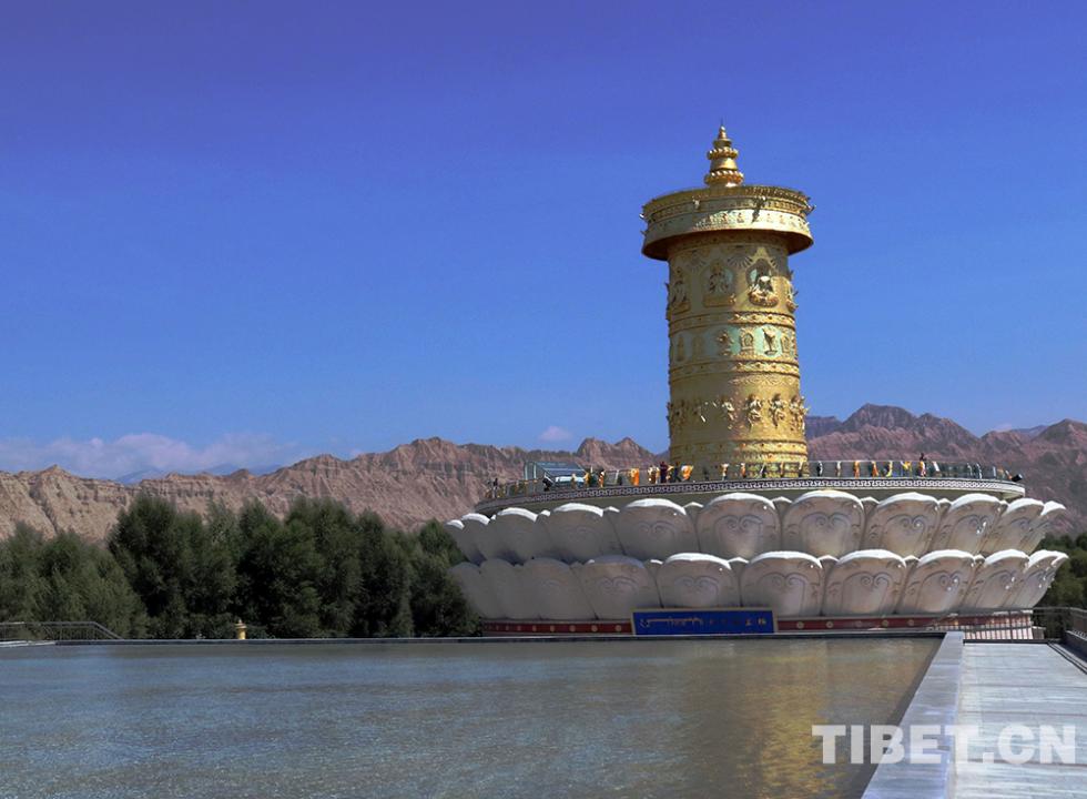 最后,班禪大師一行來到位于黃河岸邊的“中華福運(yùn)輪”,“中華福運(yùn)輪”轉(zhuǎn)經(jīng)輪主體高42米,于2012年獲頒吉尼斯世界紀(jì)錄。“中華福運(yùn)輪”坐北向南,由黃河民俗博物館、倒影池、轉(zhuǎn)經(jīng)塔三部分組成。班禪大師一行,背對著翻騰著青色波濤的黃河坐下,面對著“中華福運(yùn)輪”,班禪帶領(lǐng)僧眾念誦祈愿經(jīng)文,祈禱世界和平、國泰民安、五谷豐登、眾生幸福。(中國西藏網(wǎng)文、圖/袁星宇)