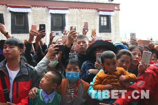清晨,歷史文化名城日喀則天高氣爽,眾多信眾和游客在扎什倫布寺大門前,翹首恭候班禪一行。攝影:王淑。