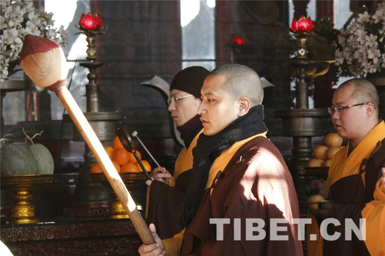 1月28日,雍和宮舉行法會,紀(jì)念十世班禪大師圓寂30周年。圖為上午8時許,約80位教職人員、僧人誦禱經(jīng)文,有序進入法輪殿。[詳細(xì)] -