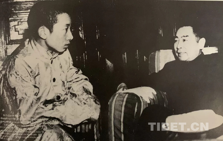1951年4月,周恩來總理親切會(huì)見十世班禪。(翻拍自《十世班禪大師 劉隆攝影集》)