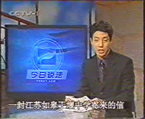 付出總有回報(bào)。學(xué)生看《今日說法》寫了許多讀后感,雪片似地匯集到校報(bào)編輯部,最后以整版的篇幅刊登在校報(bào)上。以此為基礎(chǔ),加以整理,我寫了一篇我校師生收看《今日說法》情況和效果的報(bào)道,寄往中央電視臺(tái)。2000年4月14日,《今日說法》首期反饋版,錄用了我的報(bào)道。一名普通觀眾,文章被中央電視臺(tái)錄用,我感到十分榮幸。