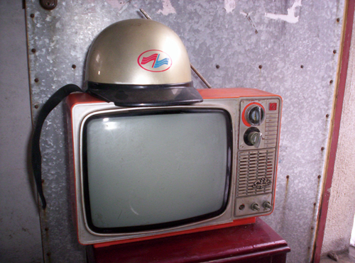 初次聽說“電視”一詞,還是上初二的1973年。一天下課后,要好的同學(xué)丁正偷偷跟我講,區(qū)委大院有一臺(tái)“電視”,象大收音機(jī)似的,能放“電影”,“銀幕”只有手帕大小。耐不住好奇,放晚學(xué)后,我跟著丁正來到區(qū)委大院禮堂外,透過窗戶向里望去:屋內(nèi)空蕩蕩的,主席臺(tái)右側(cè)有一木櫥,長長的腳,象百葉箱似的,門敞開著,里面也是空蕩蕩的,一根線連著外面高聳入云的天線,至于什么“電視”,沒見著。