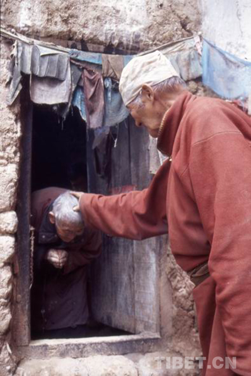 拍完照,麥格隆說帶我看看修行洞的其他地方,我欣然。從他的起居室出來往右十來步,是廚房,其實也就是利用山崖之間的一個縫隙蓋的,頂上被煙火熏得有些黑,一位白發(fā)蒼蒼的老婦人在里面做飯,見到麥格隆,立即恭敬地走過來,雙手合十躬身低頭,麥格隆和藹地伸手在她的頭頂上摸了一下,為她賜福。