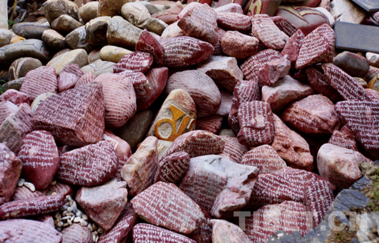 佛教文化的興盛使得人們對神佛熱衷崇拜,巖壁已不能滿足宏揚(yáng)教義和偶像崇拜的需求,靈石崇拜古而有之,在石頭上刻上經(jīng)咒和神佛圖像增強(qiáng)其靈性的行為產(chǎn)生,隨處可揀的石頭便成了石刻藝人們創(chuàng)作的天地——瑪尼石由此而生。