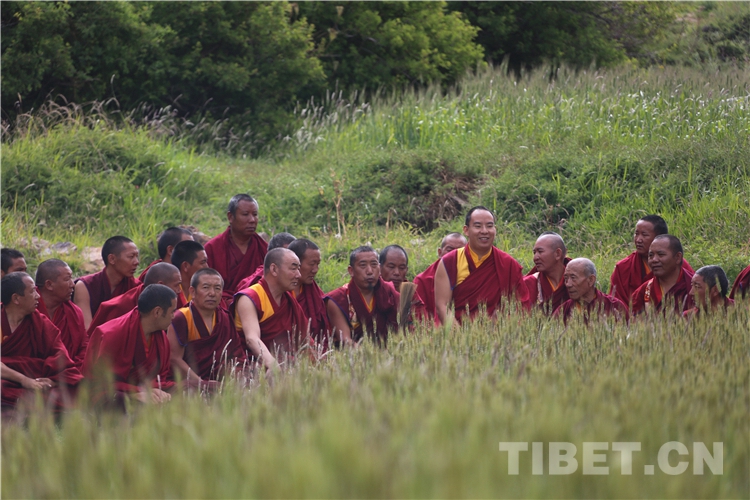 圖為十一世班禪在米拉日巴故居旁的農(nóng)田“沃瑪?shù)A松” 攝影:王淑