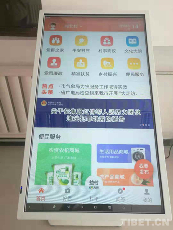 圖為格爾木市郭勒木德鎮(zhèn)政府大廳擺放的“昆侖紅”手機(jī)應(yīng)用軟件首頁(yè) 攝影:郝江震