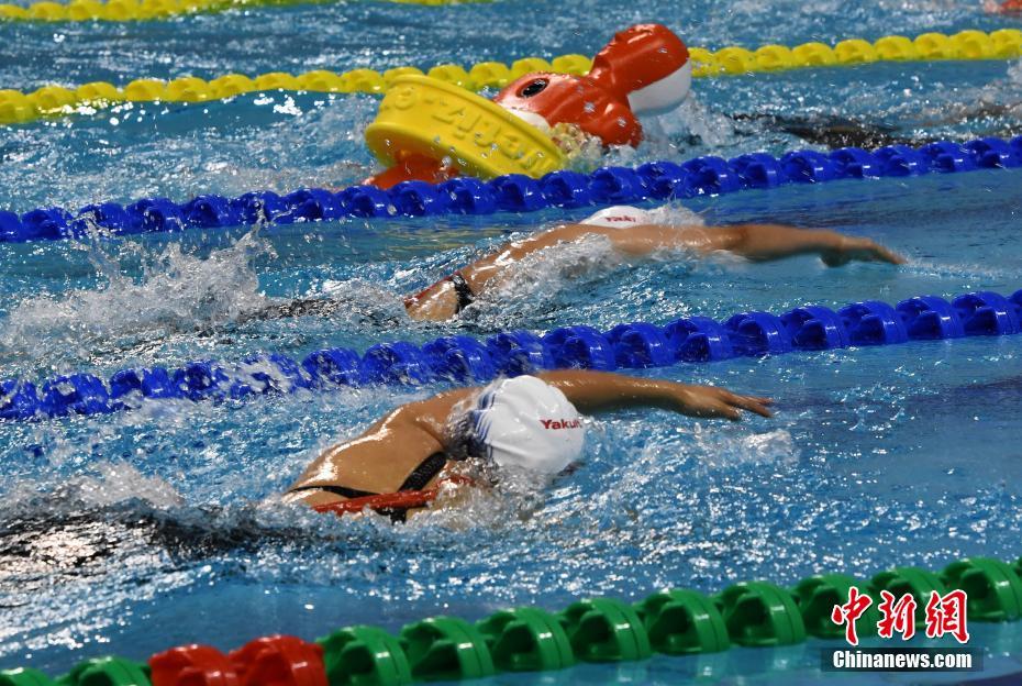 10月22日晚,在湖北省武漢市進(jìn)行的第七屆世界軍人運(yùn)動會男子4x50米混合救生接力決賽中,中國隊(duì)以1分27秒37的成績獲得冠軍。中新社記者 周毅 攝