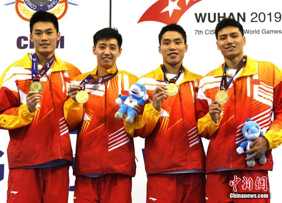 武漢軍運(yùn)會 中國隊(duì)獲男子4x50米混合救生接力賽冠軍