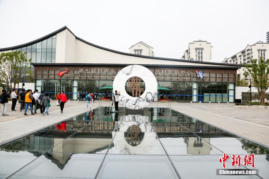 圖為武漢軍運(yùn)村歡迎中心廣場。中新社記者 張暢 攝