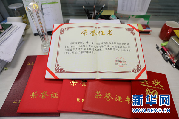 圖為葉金所獲榮譽(yù)證書(shū)。 新華網(wǎng) 汪亞/攝