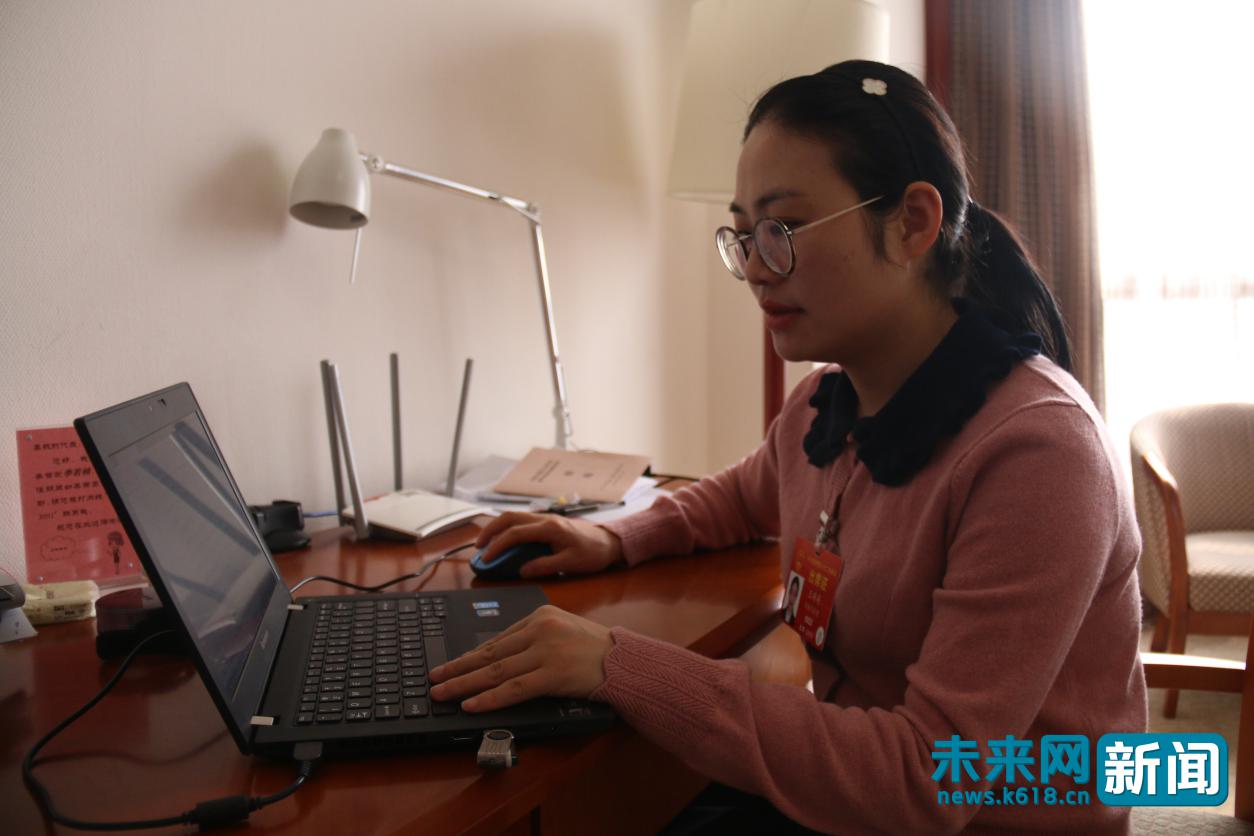 王萌萌在準(zhǔn)備2019年全國兩會小組發(fā)言內(nèi)容。未來網(wǎng)記者 朱延生攝