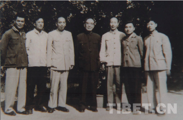 1964 年6 月26 日,李四光先生接見希夏邦馬科考隊(duì)隊(duì)員。中排:尹贊勛(左二)、竺可楨(左五)、劉東生(左六)、李四光(左七)、楊鐘?。ㄓ乙唬?、張席褆(右三)、樂(lè)森璕(右四)