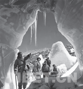 置身于希夏邦馬冰洞中的科考隊(duì)員。右二為施雅風(fēng)