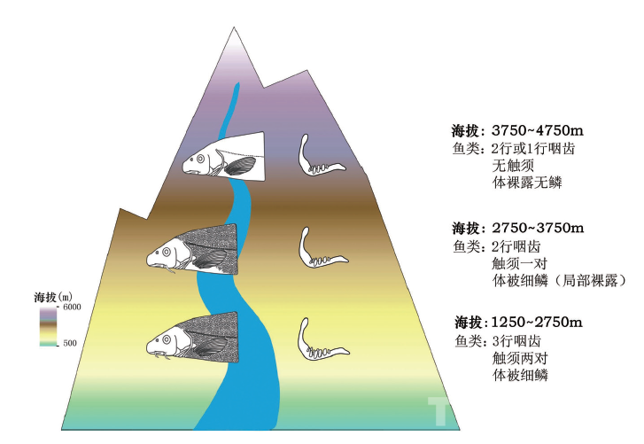 裂腹魚類演化的階段性與青藏高原海拔關(guān)系示意圖 孫赫英/繪制