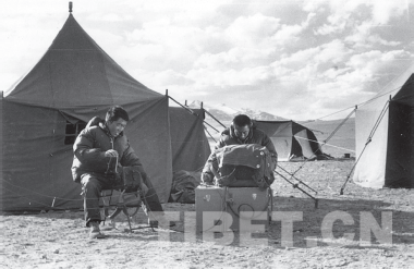 無人區(qū)13號營地,發(fā)電報(bào)與北京聯(lián)系 李明森/攝影