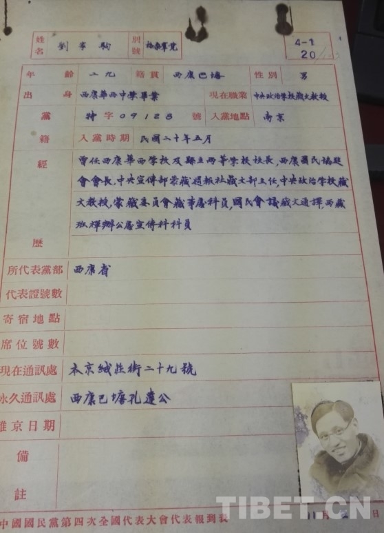 1931年,劉家駒加入中國國民黨,成為早期藏族黨員之一。他不僅出席了中國國民黨四中全會,還參加了國民政府在洛陽召開的國難會議,并將自己的著作《康藏的過去和現(xiàn)在》分發(fā)給與會人士,大聲呼吁大家重視康藏工作。同年11月21日,“西康旅京同鄉(xiāng)國防救亡會”成立,劉家駒被選舉為會長,在9名執(zhí)行理事中,有6名是藏族,分別為劉家駒(格桑群覺)、江安西(洛松鄧珠)、馬定西、佛平西、楊紹西、馮云仙(女)?!秶勚軋?名人錄》第8卷20期專門對時年29歲的劉家駒進行了介紹。此時的他,已經(jīng)是中央政治學(xué)校(蒙藏政治訓(xùn)練班)的藏文教授,在教育領(lǐng)域發(fā)揮著重要作用,為培養(yǎng)了解藏族文化和語言的人才貢獻力量,為邊疆治理提供智力支持。