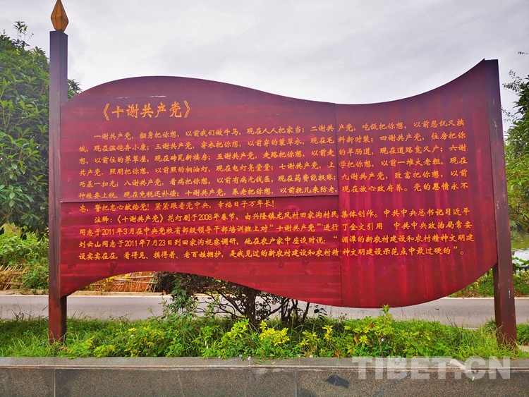 圖為 《十謝共產(chǎn)黨》歌詞樹立在貴州省遵義市湄潭縣龍鳳村田家溝