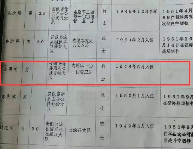據(jù)“馬鞍山發(fā)布”消息,經(jīng)過信息篩選和檔案査證,馬鞍山當(dāng)涂籍烈士方洪有的親人就在當(dāng)涂縣姑孰鎮(zhèn)龍華村。