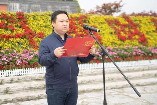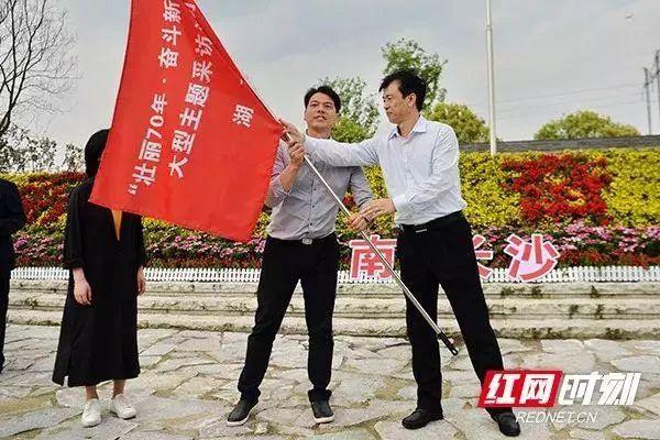 中共湖南省委常委、宣傳部長蔡振紅為湖南日報、紅網(wǎng)蹲點(diǎn)記者代表授旗。