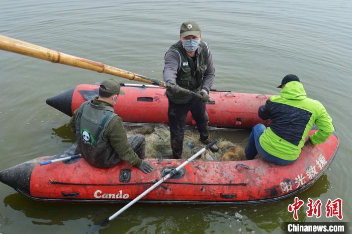 志愿者在候鳥棲息地清理地籠網(wǎng),保障為以魚為生的潛鴨類候鳥覓食安全?!⊥鹾I 攝