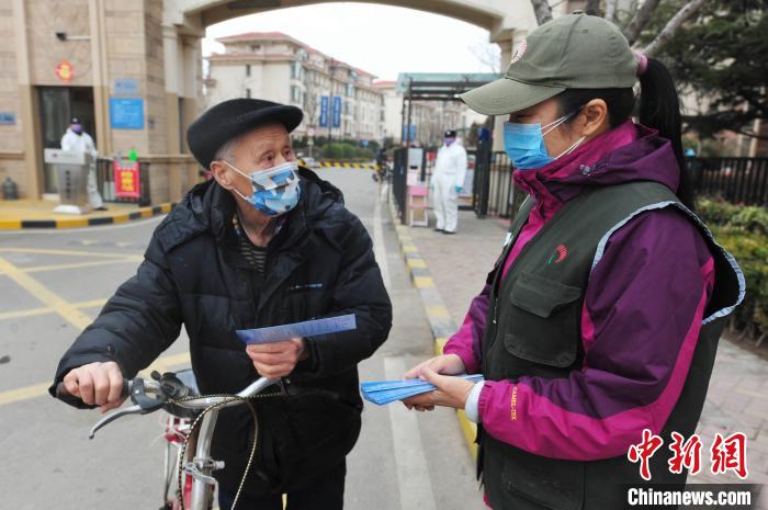 志愿者向社區(qū)居民發(fā)送“禁食野味”宣傳單?!⊥鹾I 攝