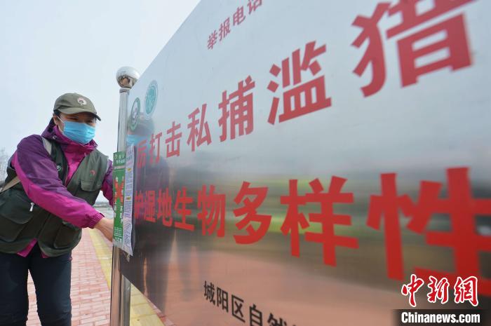 青島市城陽區(qū)野生動植物保護協(xié)會的志愿者來到社區(qū)、菜市場附近張貼“禁食野味”海報?!⊥鹾I 攝
