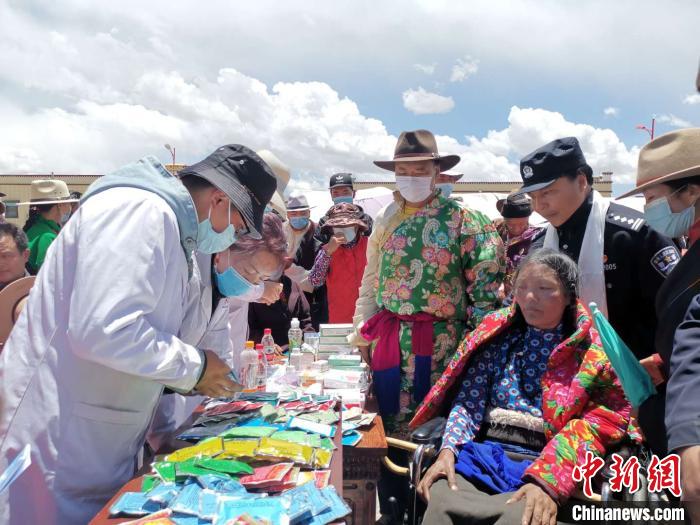 圖為活動現(xiàn)場發(fā)放各類藥品。安多縣委宣傳部 供圖