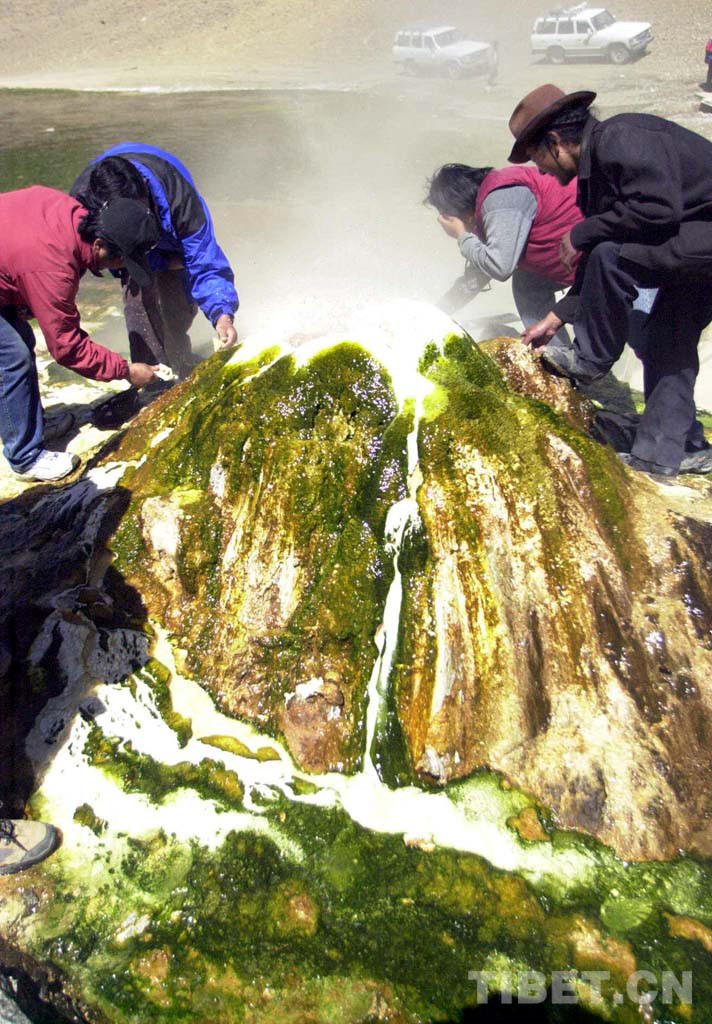 這是科考人員在申扎縣考察一眼地?zé)釃娙ㄌ普倜?001年攝)