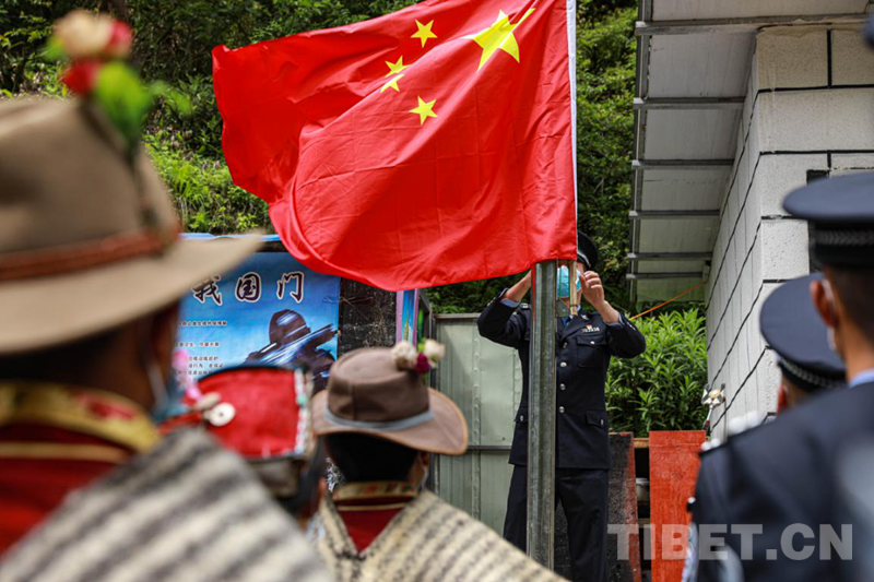 圖為陳塘邊境派出所民警和夏爾巴群眾一同升國旗