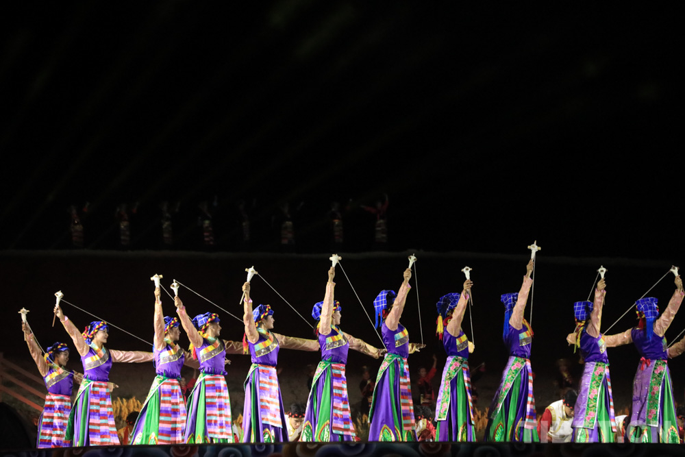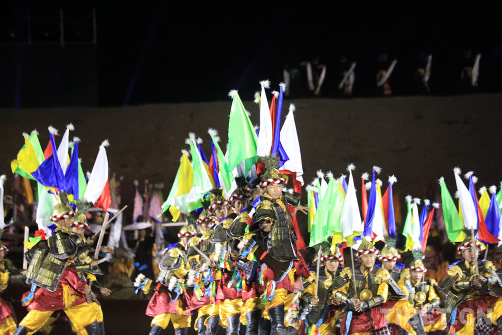 開幕式上,不拘一格的《播種藏漢情懷》開場,讓觀眾眼前一亮,《幸福扎囊》《騰飛扎囊》《盛世扎囊》等篇章,通過室外借景構(gòu)景,讓演出和扎囊夜色相得益彰,呈現(xiàn)出視覺和聽覺的沖擊感,彰顯民族特色文化底蘊,充分體現(xiàn)了扎囊縣改革發(fā)展穩(wěn)定的大好局面,以及扎囊各族干部群眾投身全縣經(jīng)濟(jì)社會發(fā)展的豪情壯志。