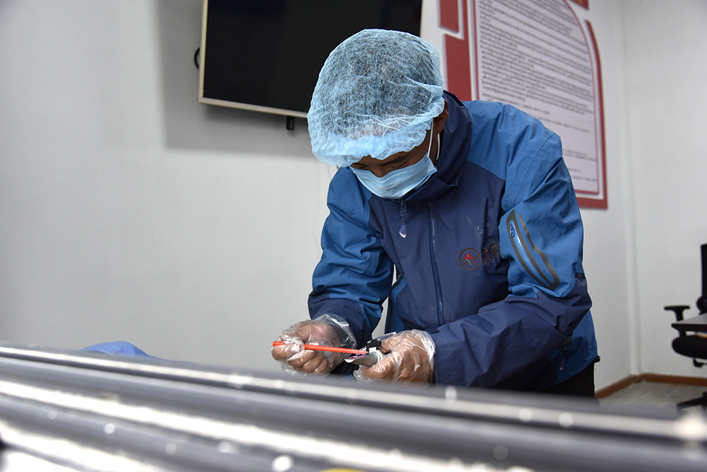 圖為那曲市聶榮縣色慶鄉(xiāng)雜瑪多種經(jīng)營(yíng)合作聯(lián)合社工人正在檢測(cè)牛奶質(zhì)量 攝影:王媛媛