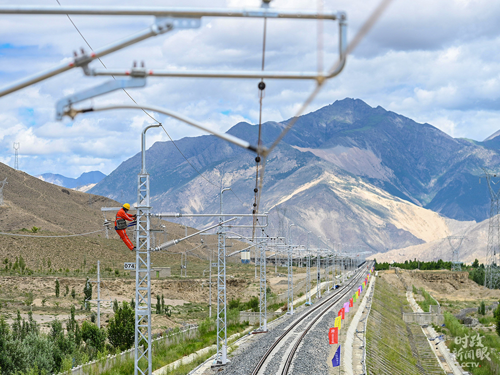 施工人員對(duì)拉林鐵路(川藏鐵路拉薩至林芝段)沿線上空架設(shè)的供電線路進(jìn)行復(fù)檢。拉林鐵路是西藏首條電氣化鐵路,正線全長(zhǎng)435.48公里。
