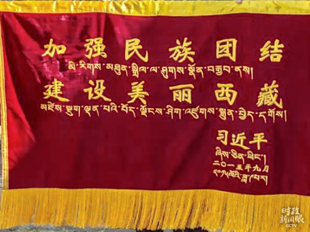 2015年,在西藏自治區(qū)成立50周年慶祝大會(huì)上,西藏300多萬(wàn)各族兒女收到習(xí)近平題詞的“加強(qiáng)民族團(tuán)結(jié) 建設(shè)美麗西藏”賀匾。